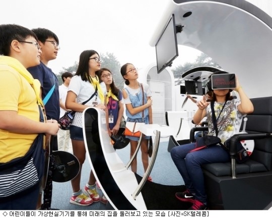¹Ì·¡°ü¿¡¼­´Â ¸Ó¸®¿¡ ¾²´Â °¡»óÇö½Ç±â±â¸¦ ÅëÇØ ½Ã¼±ÀÌ ¿òÁ÷ÀÌ´Â ¹æÇâ¿¡ µû¶ó 360µµ·Î ¹Ì·¡ÀÇ ÁýÀ» µÑ·¯º¸°í, ÀÌ ¾È¿¡¼­ ¼ÕÀ» ¿òÁ÷¿© 3D ÇÁ¸°ÅÍ·Î ¿ä¸®¸¦ Çϰųª Ȧ·Î±×·¥ ¿µ»óÅëÈ­¸¦ ÇÏ´Â µî ¹Ì·¡ÀÇ »îÀ» °£Á¢ üÇèÇÒ ¼ö ÀÖ´Ù.