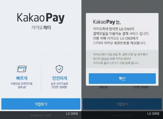 īī¿ÀÆäÀ̴ ȸ¿ø°¡ÀԽà ÃÖÃÊ ½Å¿ëÄ«µå Á¤º¸¿Í °áÁ¦ ºñ¹Ð¹øÈ£¸¦ µî·ÏÇϸé, ÀÌÈÄ °áÁ¦ ºñ¹Ð¹øÈ£ ÀԷ¸¸À¸·Îµµ »óǰ´ë±ÝÀ» °áÁ¦ÇÒ ¼ö ÀÖ´Â ±¸Á¶´Ù. ¸ÕÀú īī¿ÀÅåÀ» ½ÇÇàÇÑ ´ÙÀ½ ¼³Á¤ ¸Þ´º¿¡¼ īī¿ÀÆäÀ̸¦ ¼±ÅÃÇϰí À̸§¡¤Áֹεî·Ï¹øÈ£ ÀÔ·Â, ÈÞ´ëÆù º»ÀÎ ÀÎÁõÀ» °ÅÃÄ¾ß ÇÑ´Ù. ±×´ÙÀ½ ´Ü°è¿¡¼ °áÁ¦¿¡ »ç¿ëÇÒ ºñ¹Ð¹øÈ£ 6~12ÀÚ¸®¸¦ ÀÔ·ÂÇÏ°í °áÁ¦ÇÒ ½Å¿ë¡¤Ã¼Å©Ä«µåÀÇ ¹øÈ£, À¯È¿±â°£, ºñ¹Ð¹øÈ£ µîÀ» ÀÔ·ÂÇÏ¸é °¡ÀÔÀÌ ¿Ï·áµÈ´Ù.