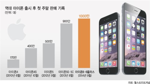 22ÀÏ(ÇöÁö½Ã°£) ¾ÖÇÃÀº ½ÅÁ¦Ç° ¾ÆÀÌÆù6¿Í 6Ç÷¯½º°¡ Ãâ½ÃµÈ µÚ ù ÁÖ¸» µ¿¾È ±Û·Î¹ú ÆÇ¸Å·®ÀÌ 1000¸¸´ë¸¦ ³Ñ°å´Ù°í ¹àÇû´Ù. Áö³­ÇØ ¾ÆÀÌÆù5S¿Í 5C¸¦ Ãâ½ÃÇßÀ» ´ç½ÃÀÇ ÆÇ¸Å ±â·Ï(900¸¸´ë)À» °¥¾ÆÄ¡¿ü´Ù. ¾ÖÇà Á¦Ç°ÀÌ ÆÇ¸Å ½ÃÀÛ ÈÄ Ã¹ »çÈê°£ 1000¸¸´ë¸¦ µ¹ÆÄÇÑ °ÍÀº À̹øÀÌ Ã³À½ÀÌ´Ù. ¾ÖÇÃÀº 2007³â ¾ÆÀÌÆù ù Ãâ½ÃºÎÅÍ 8³â ¿¬¼Ó ½ÅÁ¦Ç° ½ÃÆÇ ù ÁÖ¸» ÆÇ¸Å ±â·ÏÀ» °æ½ÅÇß´Ù. ¾ÆÀÌÆù6¿Í 6Ç÷¯½º´Â Áö³­ 19ÀÏ ¹Ì±¹À» ºñ·ÔÇÑ ÀϺ», µ¶ÀÏ, È«Äá, ¿µ±¹, ÇÁ¶û½º, Ǫ¿¡¸£Å丮ÄÚ, ½Ì°¡Æ÷¸£, È£ÁÖ, ij³ª´Ù µî 10°³±¹¿¡¼­ Ãâ½ÃµÆ´Ù.