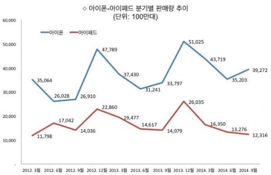 Ȱ¦ ¿ôÀº ¾ÆÀÌÆù°ú ´Þ¸® ¾ÆÀÌÆÐµå´Â ºÎÁøÀ» ¸éÄ¡ ¸øÇß´Ù. ¾ÖÇÃÀº Áö³­ ºÐ±â¿¡ ÃÑ 1õ230¸¸´ë °¡·®ÀÇ ¾ÆÀÌÆÐµå¸¦ ÆÇ¸ÅÇß´Ù. ÀÌ °°Àº ÆÇ¸Å·®Àº ÀüºÐ±â(1õ320¸¸´ë) »Ó ¾Æ´Ï¶ó Áö³­ ÇØ °°Àº ±â°£(1õ400¸¸´ë)¿¡ ºñÇØ¼­µµ Å©°Ô ÁÙ¾îµç ¼öÄ¡´Ù.