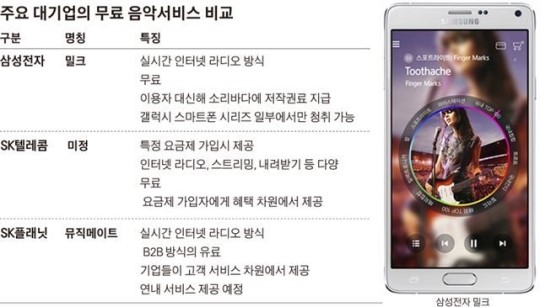 »ï¼ºÀüÀÚ¿¡ À̾î SKÅÚ·¹ÄÞ, SKÇ÷¡´Ö µî ´ë±â¾÷µéÀÌ ÀÕµû¶ó À½¾Ç »ç¾÷ ÁøÃâÀ» ÁغñÇϸ鼭 °øÂ¥ À½¾Ç ¼­ºñ½º °æÀï¿¡ º»°ÝÀûÀ¸·Î ºÒÀÌ ºÙ°í ÀÖ´Ù. ¹«·á À½¾Ç ¼­ºñ½º¸¦ ÈÞ´ëÆù ÆÇ¸Å ¹× °¡ÀÔÀÚ È®º¸ ¼ö´ÜÀ¸·Î »ï°Ú´Ù´Â Àü·«ÀÌ´Ù.
