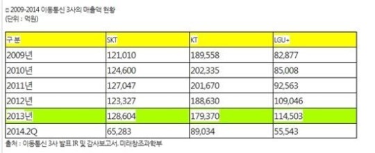 ¹Ì·¡ºÎ°¡ Á¦ÃâÇÑ £§2009~2014³â À̵¿Åë½Å 3»çº° ARPU£§¿¡ µû¸£¸é, SKÅÚ·¹ÄÞÀº Áö³­ÇØ ARPU´Â 4¸¸3987¿ø(ÀüüARPU)À¸·Î ÀÌÅë3»ç Áß °¡Àå ³ô¾Ò´Ù. °¡ÀÔÀÚ Æ÷È­·Î 2012³â °¡ÀÔÀÚ´ç Æò±Õ¼öÀÍ(ARPU)ÀÌ ´Ù¼Ò ¶³¾îÁö´Â °Íó·³ º¸¿´Áö¸¸, Áö³­ÇØ¿Í ¿ÃÇØ ¿¬¼Ó ½ÇÀûÀÌ °³¼±µÆ´Ù.