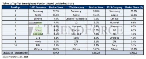 Æ®·»µåÆ÷½º´Â ¿ÃÇØ ½º¸¶Æ®Æù ½ÃÀå Á¡À¯À²À» »ï¼º 26.6%, ¾ÖÇà 16.4%, ·¹³ë¹ö 7.4%, È­¿þÀÌ 6.6%, »þ¿À¹Ì 6.5%%, LG 6.1%ÀÇ ¼øÀÇ·Î ³»´ÙºÃ´Ù.