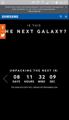 ¡´ÀÌ »çÁøÀº 3¿ù 1ÀÏ ¹Ù¸£¼¿·Î³ª ¸ð¹ÙÀÏ¿ùµåÄá±×·¹½º(MWC2015)¿¡¼ ¹ßÇ¥µÉ »ï¼º°¶·°½ÃS6¹ßÇ¥ Ä«¿îÆ®´Ù¿îÀÌ ½ÃÀÛµÆÀ½À» º¸¿©ÁØ´Ù. ¡´»çÁø=³ë¸£¿þÀ̻Z¡µ