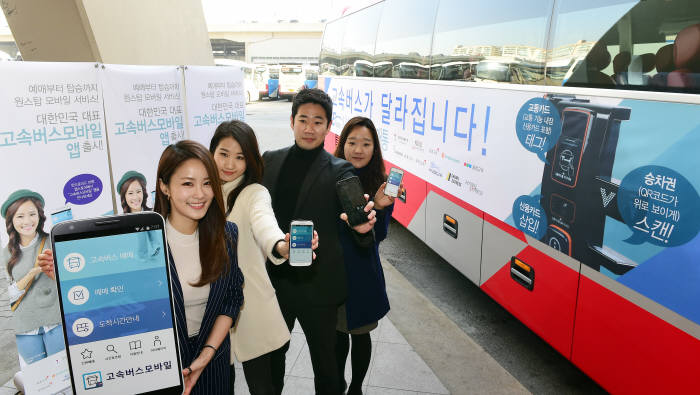 Çѱ¹½º¸¶Æ®Ä«µå´Â 2ÀÏ ¼­¿ï ¹ÝÆ÷µ¿ ¼­¿ï°í¼Ó¹ö½ºÅ͹̳ο¡¼­ ¡®°í¼Ó¹ö½º¸ð¹ÙÀÏ ¾Û¡¯ Ãâ½Ã ¹× ¡®E-PASS(°í¼Ó¹ö½º ´Ù±â´ÉÅëÇմܸ»±â)¡¯ °³Åë½ÄÀ» °¡Á³´Ù. ½º¸¶Æ®ÆùÀ¸·Î 153°³ °í¼Ó¹ö½º Àü ³ë¼±ÀÇ ½Ç½Ã°£ ½ÂÂ÷±Ç ¿¹¸Å´Â ¹°·ÐÀÌ°í ¹ß±Ç±îÁö °¡´ÉÇÏ´Ù. °í¼Ó¹ö½º¸ð¹ÙÀÏ È«º¸¸ðµ¨ÀÎ °³±×¿ì¸Õ ±èÁö¹Î°ú ¸ðµ¨µéÀÌ ¾ÛÀ» ¼Ò°³Çϰí ÀÖ´Ù.