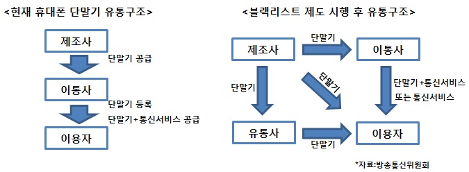 ÇöÀç ±¹³»¿¡¼­ »ç¿ëµÇ´Â ÈÞ´ëÆù µî·Ï Á¦µµ·Î Á¤½Ä ¸íĪÀº ¡®Æó¼âÇü IMEI °ü¸®Á¦µµ¡¯´Ù. ´Ü¸»±âÀÇ IMEI¸¦ ÀÌÅë»çÀÇ ½Ã½ºÅÛ¿¡ µî·ÏÇÏ°í µî·ÏµÈ ´Ü¸»±â¸¸ °³ÅëÀ» Çã¿ëÇÏ´Â ¹æ½ÄÀÌ´Ù. ¼ÒºñÀÚ´Â ÀÌÅë»ç¿¡ µî·ÏµÈ ´Ü¸»±â¸¸ ±¸ÀÔÇØ ¾µ ¼ö ÀÖ´Ù.