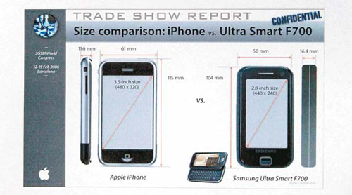ÃÑ 51ÂÊ¿¡ À̸£´Â ÇÁ·¹Á¨Å×ÀÌ¼Ç ÀÚ·á·Î ¸¸µé¾îÁø ÀÌ ¹®¼´Â ¹Ì±¹ ¹ý¿ø¿¡ Áõ°Å·Î Á¦ÃâµÆÁö¸¸ ±× äÅà ¿©ºÎ´Â ¹àÇôÁöÁö ¾Ê¾Ò´Ù. ¾ÖÇÃÀº ³ëŰ¾Æ, »ï¼º, LG µî ´ç½Ã ÈÞ´ëÆù ¼±µÎ ¾÷üµé Á¦Ç° ¿ÜÇü°ú Ư¡À» ¿°ÅÇß´Ù. ƯÈ÷ ³ëŰ¾Æ Á¦Ç°Àº ¿ÜÇüÀ» ºÐ¼®ÇÏÁö ¾Ê¾ÒÁö¸¸ »ï¼º°ú LG Á¦Ç°Àº LCD ȸé Å©±â, °¡·Î¤ý¼¼·Î ±æÀÌ, µÎ²²±îÁö öÀúÈ÷ ºñ±³ ºÐ¼®Çß´Ù.