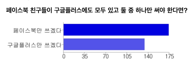 ÆûÀ» ¿Ï¼ºÇØ ÆäÀ̽ººÏ/±¸±ÛÇ÷¯½º/Æ®À§ÅÍ¿¡ ¿Ã·È½À´Ï´Ù. ÇöÀç±îÁö 2~3ÀÏ µ¿¾È 301¸íÀÌ ´äº¯Çߴµ¥ ÀÇ¿ÜÀÔ´Ï´Ù. ±¸±ÛÇ÷¯½º¸¸ ¾²°Ú´Ù´Â ÀÀ´äÀÚ°¡ ÀǿܷΠ¸¹½À´Ï´Ù. ¾çÂÊ ¸ðµÎ¸¦ ¼±ÅÃÇÑ 6¸íÀ» Á¦¿ÜÇÑ 295¸í °¡¿îµ¥ ÆäÀ̽ººÏ¸¸ ¾²°Ú´Ù 167¸í, 57%. ±¸±ÛÇ÷¯½º¸¸ ¾²°Ú´Ù 128¸í, 43%. ÆäÀ̽ººÏ ºñÀ²ÀÌ ¾ÐµµÀûÀ¸·Î ³ôÀ» ÁÙ ¾Ë¾Ò´Âµ¥ 57: 43.