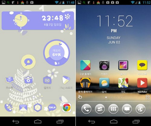¾ÖÇà ¾ÆÀÌÆù¿¡´Â ¾ø´Âµ¥, ¾Èµå·ÎÀÌµå ¿î¿µÃ¼Á¦(OS)¸¦ žÀçÇÑ ½º¸¶Æ®Æù¿¡´Â ÀÖ´Â °Ô ¹»±î. ¹Ù·Î ·±Ã³(Launcher)´Ù. ¾ÆÀÌÆù »ç¿ëÀÚ¶ó¸é ´©±¸µç ¶È°°Àº ¹æ½ÄÀ¸·Î ±¸¼ºµÈ ¸Þ´º¸¦ »ç¿ëÇÏ°Ô µÈ´Ù. ¹è°æÈ­¸éÀ» ¹Ù²Ü ¼ö´Â ÀÖÁö¸¸ ÇØÅ·À» ÇÏÁö ¾Ê´Â ÇÑ ¾ÆÀÌÄÜ ¹è¿­ ¹æ½ÄÀ̳ª Å©±â, ¸ð¾çÀ» ¹Ù²Ù´Â °ÍÀº ºÒ°¡´ÉÇÏ´Ù.
