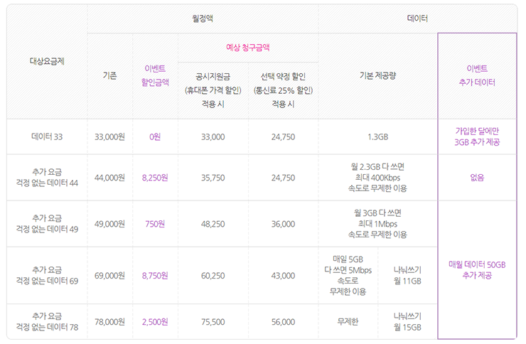 µ¥ÀÌÅÍ ¹«Á¦ÇÑÀº 6°³¿ù°£ 2¸¸¿ø´ë·Î ÀÌ¿ë!