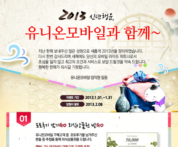 Á¦¸ñ ¡æ [1¿ù À̺¥Æ® °øÁö] 2013 ½Å³âÇà¿î, À¯´Ï¿Â¸ð¹ÙÀϰú ÇÔ²²~