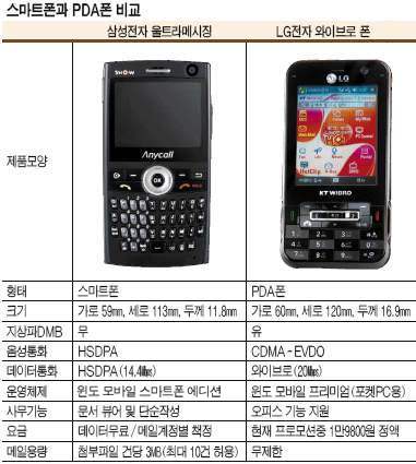 ÃÖ±Ù Ãâ½ÃµÈ »ï¼ºÀüÀÚÀÇ ½º¸¶Æ®Æù `¿ïÆ®¶ó¸Þ½Ã¡£§(¹Ì±¹¸í ºí·¢Àè)°ú´Â Åë½Å¹æ½ÄÀ̳ª ±â´É¿¡¼­ ´Ù¼Ò Â÷À̰¡ ÀÖ´Ù. ÀÏ´Ü PDAÆùÀº ¸»±×´ë·Î `PDA+ÈÞ´ëÆù¸ðµâ£§ÀÎ ¹Ý¸é ½º¸¶Æ®ÆùÀº ÈÞ´ëÆù¿¡ PDAÀÇ ÀϺαâ´ÉÀ» ´õÇÑ °ÍÀÌ´Ù. ¿ïÆ®¶ó¸Þ½Ã¡Àº µÎ²²°¡ 11.8§®·Î ±âÁ¸ ÈÞ´ëÆù°ú ºñ½ÁÇÏ´Ù. ¶Ç OSµµ ½º¸¶Æ®Æù¿ëÀÎ À©µµ¸ð¹ÙÀÏ ½º¸¶Æ®Æù¿¡µð¼ÇÀ» žÀçÇßÁö¸¸ LGÀüÀÚÀÇ ¿ÍÀÌÇÁ·ÎÆùÀº À©µµ ¸ð¹ÙÀÏÇÁ¸®¹Ì¾ö(Æ÷ÄÏPC¿ëOS)À» äÅÃÇß´Ù. »ç¿ë °¡´ÉÇÑ ÀÀ¿ë¼ÒÇÁÆ®¿þ¾îÀÇ Æø¿¡¼­´Â »ó´çÇÑ Â÷À̰¡ ÀÖ´Ù. ½º¸¶Æ®Æù¿¡¼­´Â ºä¾î·Î ¿ÀÇǽºÆÄÀÏÀ» º¸°Å³ª °£´ÜÇÑ ¹®¼­ÀÛ¼º, ÀÏÁ¤°ü¸® µîÀ¸·Î ±â´ÉÀÌ Á¦ÇѵȴÙ. ¹Ý¸é PDAÆùÀº ¿ÀÇǽºÆÄÀÏ ÀÛ¼ºÀº ¹°·Ð ´Ù¾çÇÑ »ó¿ë ¼ÒÇÁÆ®¿þ¾î¸¦ ÀÌ¿ëÇÒ ¼öÀÖ´Ù.