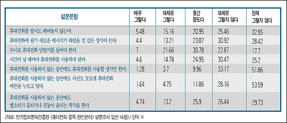 ÈÞ´ëÀüÈ­ Áßµ¶ Çö»óÀº ³ªÀ̰¡ ¾î¸±¼ö·Ï ´õ ³ô°Ô ³ªÅ¸³µ´Ù. 2005³â Çѱ¹¹®È­ÁøÈï¿ø¿¡¼­ ½Ç½ÃÇÑ ¡´Ã»¼Ò³âÀÇ ÈÞ´ëÀüÈ­ »ç¿ë½ÇÅ¡µ ¿¬±¸ °á°ú¸¦ º¸¸é, ´Ù¸¥ »ç¶÷ÀÇ º§ ¼Ò¸®¸¦ ÀÚ½ÅÀÇ º§¼Ò¸®·Î Âø°¢ÇÏ´Â µîÀÇ Áõ¼¼¸¦ º¸Àδٴ ´ë´äÀÌ 28.32%¸¦ Â÷ÁöÇß´Ù. ¿À·§µ¿¾È ÈÞ´ëÀüÈ­°¡ ¿ï¸®Áö ¾ÊÀ¸¸é º§ÀÌ Á¦´ë·Î ¼³Á¤µÆ´ÂÁö È®ÀÎÇÑ´Ù´Â ´ë´äµµ 29.28%¸¦ Â÷ÁöÇß´Ù.