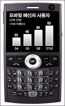 ±×·¯³ª ¸ð¹ÙÀÏ IMÀÇ °æ¿ì À̵¿Åë½Å»ç°£ÀÇ ¿¬µ¿¸¸ ÀÌ·ïÁø´Ù¸é 4,100¸¸ ÈÞ´ëÆù °¡ÀÔÀÚ¸¦ ¸Þ½ÅÀú·Î ¿¬°á½Ãų ¼ö ÀÖ´Ù. µû¶ó¼­ ¾÷°è Àü¹®°¡µéÀº IM »ç¿ë·®ÀÌ ±âÇϱ޼öÀûÀ¸·Î ´Ã¾î³¯ °¡´É¼ºÀÌ Å©´Ù°í ºÐ¼®ÇÑ´Ù.