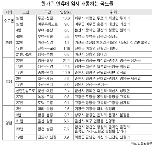 ¡ßÀӽà °³Åë µµ·Î¸¦ Ȱ¿ëÇ϶ó=¿¬ÈޱⰣ Áö¿ªº°·Î Àӽð³ÅëÇÏ´Â ±¹µµ±¸°£À» ¾Ë¾ÆµÎ¸é ÆíÇÏ´Ù. °Ç±³ºÎ´Â 4¹ø ±¹µµ ºÎ¿©~³í»ê ±¸°£ µî 20°³ ±¹µµ±¸°£(148.7§°)À» 9¿ù 21ÀÏ 0½ÃºÎÅÍ 27ÀÏ ¹ã 12½Ã±îÁö Àӽà °³ÅëŰ·Î Çß´Ù.