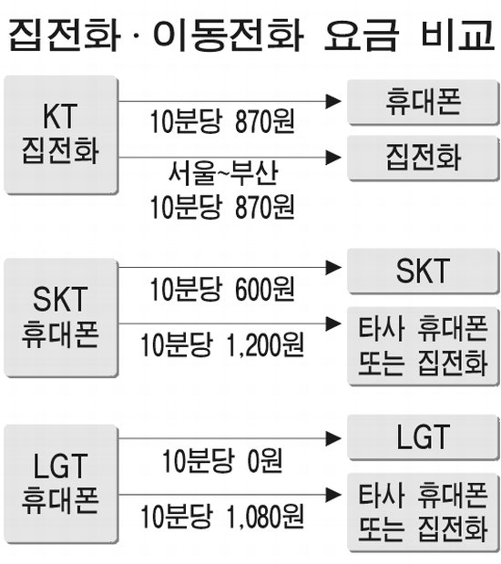 À̸¦Å׸é Áý¿¡¼­ ÈÞ´ëÀüÈ­·Î ÀüÈ­¸¦ °É ¶§ ¿¹Àü¿¡´Â KT ÁýÀüÈ­°¡ 10ÃÊ´ç 14.5¿øÀ¸·Î Àú·ÅÇßÁö¸¸ ÀÌÁ¦´Â ÈÞ´ëÀüÈ­¸¦ ¹Þ´Â »ó´ëÆíÀÌ LGÅÚ·¹ÄÞ °¡ÀÔÀÚ¶ó¸é £§¹«·á ÅëÈ­£§°¡ °¡´ÉÇÏ´Ù.