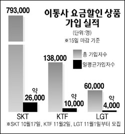 ¶Ç SKÅÚ·¹ÄÞÀÇ °¡ÀÔÀÚ°£ ÅëÈ­·á ÇÒÀÎ(¸Á³» ÇÒÀÎ) »óǰÀÌ KTF¿Í LGÅÚ·¹ÄÞÀ» ´©¸£°í °¡ÀÔÀڵ鿡°Ô °¡Àå Å« Àα⸦ ¸ðÀº °ÍÀ¸·Î ³ªÅ¸³µ´Ù.