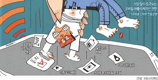 ¸ð¹ÙÀÏ ¾ÛÀº ÁÖ·Î Çϵå¿þ¾î Á¢±Ù ±ÇÇÑ(Ä«¸Þ¶ó, Ç÷¡½Ã, ¸¶ÀÌÅ©, ÀÎÅÍ³Ý ¿¬°á Çã¿ë µî)»Ó ¾Æ´Ï¶ó À§Ä¡Á¤º¸, ÁÖ¼Ò·Ï, ¹®ÀÚ µî °³ÀÎÁ¤º¸¿Í ¹ÐÁ¢ÇÑ ±ÇÇÑÀ» ¿ä±¸Çϰí ÀÖ´Â °ÍÀ¸·Î ³ªÅ¸³µ´Ù. ¾î¶² ±â´ÉÀ» »ç¿ëÇÒ ¶§ ÇØ´ç Á¤º¸°¡ Ȱ¿ëµÇ´ÂÁö¿¡ ´ëÇÑ ¸íÈ®ÇÑ ¼³¸íµµ ¾ø´Â µ¥´Ù ÀÌ·¯ÇÑ ±ÇÇÑ¿¡ µ¿ÀÇÇÏÁö ¾ÊÀ» °æ¿ì ´Ù¿î·Îµå ÀÚü°¡ µÇÁö ¾Ê´Â´Ù. ¼ÒºñÀÚµéÀº ¾ÛÀ» ÀÌ¿ëÇϱâ À§ÇØ ¾î¿ ¼ö ¾øÀÌ ¹«ºÐº°ÇÑ Á¤º¸ Ȱ¿ë¿¡ µ¿ÀÇÇÒ ¼ö¹Û¿¡ ¾ø´Â »óȲÀÌ´Ù.