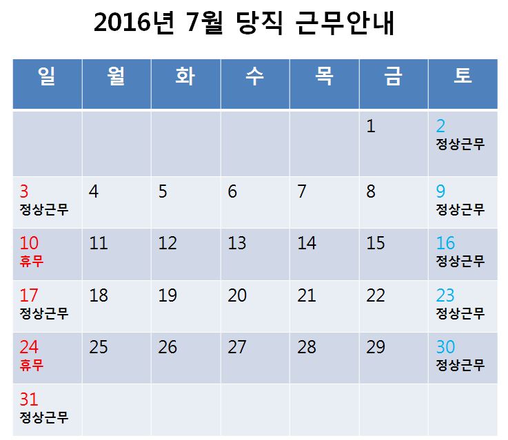 [2016³â 7¿ù ÁÖ¸» ¹× °øÈÞÀÏ ´çÁ÷±Ù¹« ¾È³»]