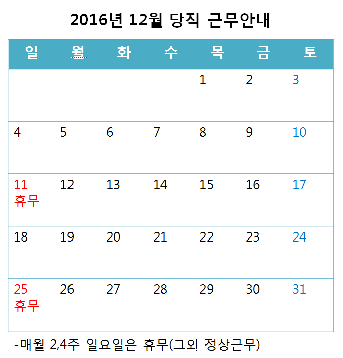 [2016³â 12¿ù ÁÖ¸» ¹× °øÈÞÀÏ ´çÁ÷±Ù¹« ¾È³»]