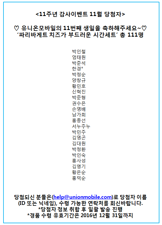 [À̺¥Æ®]À¯´Ï¸ð¿Í ÇÔ²²ÇÏ´Â 11Áֳ⠰¨»çÀ̺¥Æ® 11¿ù ´ç÷ÀÚ °øÁö