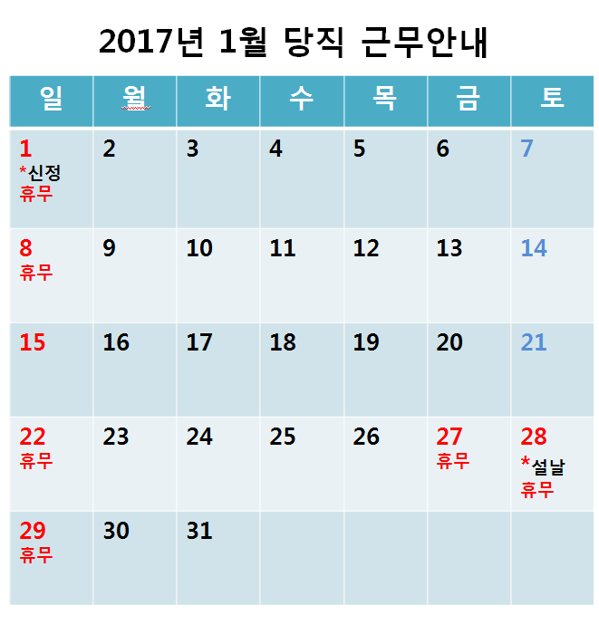 [2017³â 1¿ù ÁÖ¸» ¹× °øÈÞÀÏ ´çÁ÷±Ù¹« ¾È³»]