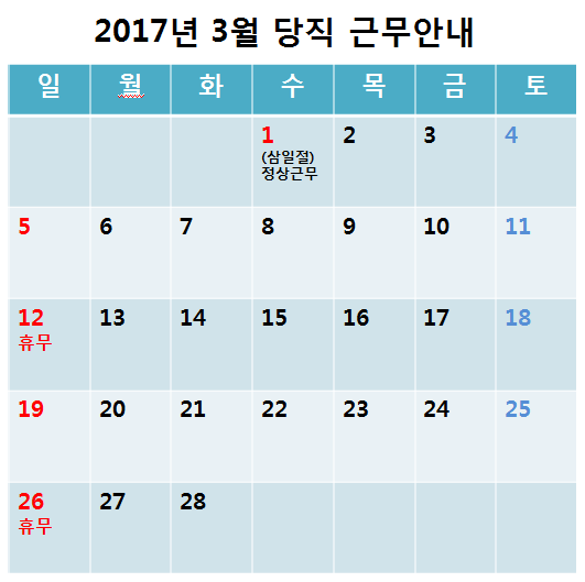 [2017³â 3¿ù ÁÖ¸» ¹× °øÈÞÀÏ ´çÁ÷±Ù¹« ¾È³»]