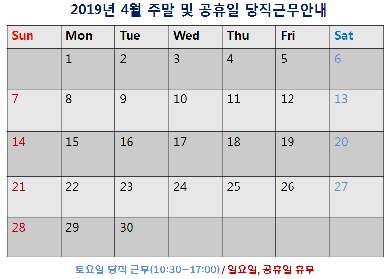 [2019³â 4¿ù ÁÖ¸» ¹× °øÈÞÀÏ ´çÁ÷±Ù¹« ¾È³»]