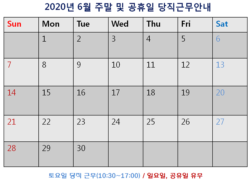 [2020³â 6¿ù ÁÖ¸» ¹× °øÈÞÀÏ ´çÁ÷±Ù¹« ¾È³»]