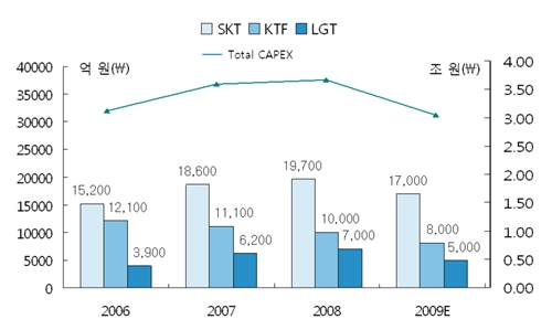 ·Î¾Æ±×·ìÄÚ¸®¾Æµµ 5ÀÏ £§2009³â À̵¿Åë½Å½ÃÀå ´ëÀü¸Á º¸°í¼£§¿¡¼ ¿ÃÇØ À̵¿Åë½Å»çµéÀÇ CAPEX(¼³ºñÅõÀÚ)°¡ Áö³ÇØ¿¡ ºñÇØ °¨¼ÒÇÒ °ÍÀ̶ó°í Àü¸ÁÇß´Ù.