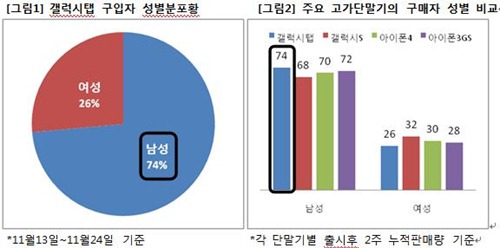 ¿ì¼± ¼ºº°·Î´Â °¶·°½ÃÅÇ ±¸¸ÅÀÚ °¡¿îµ¥ ³²¼ºÀÇ ºñÁßÀÌ 74%¸¦ ±â·ÏÇß´Ù. °¶·°½ÃS³ª ¾ÆÀÌÆù4 µî ½º¸¶Æ®Æù°ú ºñ±³ÇØ ³²¼º ±¸ÀÔ ºñÁßÀÌ ´Ù¼Ò ³ô°Ô ³ªÅ¸³µ´Ù.