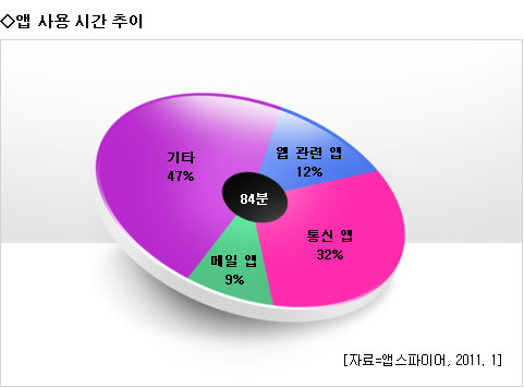À̹ø Á¶»ç °á°ú °¡Àå ¸¹ÀÌ »ç¿ëÇÏ´Â ¾ÛÀº ½ºÄ«ÀÌÇÁ °°Àº Åë½Å¾ÛÀ¸·Î ÇÏ·ç Æò±Õ 27ºÐ(32%)¿¡ ´ÞÇß´Ù. ºê¶ó¿ìÀú °°Àº À¥ ¾ÛÀº 10ºÐ(12%)À̾úÀ¸¸ç, ¸ÞÀÏ ¾ÛÀº 7ºÐ(9%) Á¤µµ »ç¿ëÇÏ´Â °ÍÀ¸·Î ³ªÅ¸³µ´Ù.