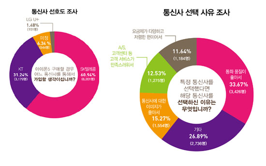 ¼³¹®Á¶»ç °á°ú ¼ÒºñÀÚµéÀÇ ½º¸¶Æ®Æù ÀÌÅë»ç ¼±Åà ½Ã ÅëÈ­ ǰÁúÀÌ °¡Àå Áß¿äÇÑ ¿ä¼Ò·Î Æò°¡µÇ°í ÀÖ°í, ¾ÖÇà ¾ÆÀÌÆùÀÇ °æ¿ì ±â±â »ó´ãÀ̳ª A/S µî °í°´ ¼­ºñ½º °­È­°¡ ÇÊ¿äÇÑ °ÍÀ¸·Î ³ªÅ¸³µ´Ù. ¶Ç, ¾ÆÀÌÆù5°¡ Ãâ½ÃµÉ ½Ã ¾î¶² ä³ÎÀ» ÅëÇØ ±¸¸ÅÇÒ °ÍÀÎÁö¸¦ ¹¯´Â Áú¹®¿¡¼­´Â ÀÎÅÍ³Ý ±¸¸Å°¡ 32%(3281¸í)·Î °¡Àå ³ô°Ô ³ªÅ¸³µ°í, ¿¹¾à ÆÇ¸Å 30%(2998¸í)¿Í ÀÌÅë»ç ´ë¸®Á¡ 24%(2469¸í)ÀÌ ±× µÚ¸¦ À̾ú´Ù.