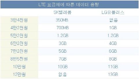 LGÀ¯Ç÷¯½º LTE ¿ä±ÝÁ¦´Â ¿ù 6¸¸¿ø´ëºÎÅÍ SKÅÚ·¹ÄÞ ´ëºñ 1GB µ¥ÀÌÅÍ ¿ë·®À» ´õ Á¦°øÇÑ´Ù. 12¸¸¿ø¿¡ 13GB Á¦°ø ¿ä±ÝÁ¦µµ ¸¸µé¾ú´Ù.