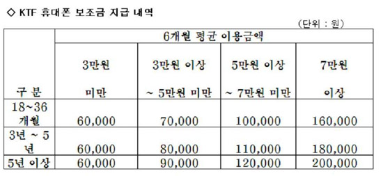 [¸Ó´ÏÅõµ¥ÀÌ À̱¸¼ø ±âÀÚ]KTF(´ëÇ¥ Á¶¿µÁÖ www.ktf.com)´Â 27ÀϺÎÅÍ 18°³¿ù ÀÌ»ó °¡ÀÔÀÚ¿¡°Ô ÃÖ¼Ò 6¸¸¿ø¿¡¼ 20¸¸¿ø±îÁö °¡ÀÔÀÚ µî±Þ¿¡ ¸ÂÃç ÃÑ 12´Ü°è·Î º¸Á¶±ÝÀ» Áö±ÞÇÑ´Ù°í ¹àÇû´Ù.
