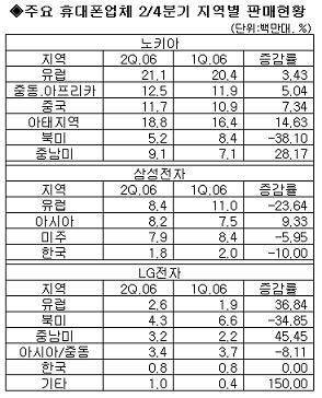 ½ÃÀåÁ¶»ç Àü¹®±â°üÀÎ ·Î¾Æ±×·ìÀº £¢»ï¼ºÀüÀÚ¿Í LGÀüÀÚ°¡ ¸¶ÁøÀÌ ÀûÀº ºÏ¹Ì½ÃÀå¿¡¼­ ³ëŰ¾Æ, ¸ðÅä·Î¶ó¿Í °æÀïÀ» ÆîÄ¡¸é¼­ ÆÇ¸Å·® Áõ´ë¸¦ ÀÌ·çÁö ¸øÇß°í, À¯·´½ÃÀå¿¡¼­ÀÇ ¹°·® °¨¼Ò¼¼°¡ ¾Ç¿µÇâÀ» ¹ÌÃÆ´Ù£¢°í ÁöÀûÇß´Ù. ÀÌ¿Í ÇÔ²² £¢³ëŰ¾Æ¿Í ¸ðÅä·Î¶ó°¡ ½ÅÈï½ÃÀåÀ» Áß½ÉÀ¸·Î Àü°³Çϰí ÀÖ´Â Àú°¡Æù ½ÃÀå¿¡ °ü½ÉÀ» º¸ÀÌÁö ¾ÊÀ¸¸é¼­ »ï¼º°ú LG°¡ »ó´ëÀûÀ¸·Î ±âȸ ¿äÀÎÀ» ¹ÚÅ»´çÇϰí ÀÖ´Ù£¢°í µ¡ºÙ¿´´Ù.