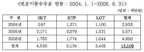 ȫâ¼±ÀÇ¿ø½ÇÀÌ Á¤º¸Åë½ÅºÎ·ÎºÎÅÍ Á¦Ãâ¹ÞÀº ÀÚ·á¿¡ ÀÇÇϸé, 2004³â 1¿ù 1ÀϺÎÅÍ 2006³â 8¿ù31ÀϱîÁö ÃÑ 1311¸¸¸íÀÌ ¹øÈ£À̵¿À» ¼±ÅÃÇß´Ù. ¹øÈ£À̵¿ °í°´ 851¸¸¸íÀÌ 2³â ¹Ý µ¿¾È ³³ºÎÇÑ ¼ö¼ö·á´Â 131¾ï¿øÀ̸ç, ÀÌ Áß ¹øÈ£À̵¿°ü¸®¼¾ÅÍ¿¡´Â 80¾ï¿øÀÌ µé¾î°¬´Ù. ±×·¯³ª ÃÖ±Ù 2³â°£ ¹øÈ£À̵¿°ü¸®¼¾ÅÍ ¿î¿µ¿¡ µé¾î°£ ºñ¿ëÀº ¼¾ÅÍ ¹× ¹é¾÷½Ã½ºÅÛ ±¸ÃàÀ» Æ÷ÇÔÇÏ¿© °íÀÛ 75¾ï¿øÀÌ´Ù.