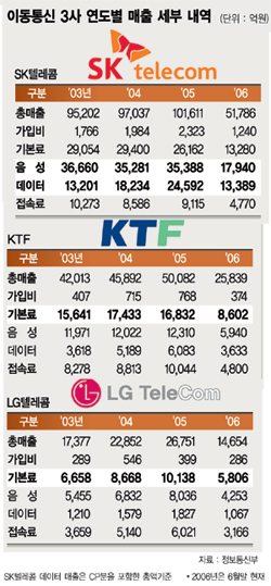 ¶Ç KTF¡¤LGÅÚ·¹ÄÞÀº ¸Å³â Àüü ¸ÅÃâÀÇ 18¡­22%ÀÇ ¼öÀÍÀ» Á¢¼Ó·á¿¡¼­ ³»°í ÀÖ´Â ¹Ý¸é, SKÅÚ·¹ÄÞÀÇ Á¢¼Ó·á ±â¿©µµ´Â Àüü ¸ÅÃâÀÇ 9% ¼öÁØ¿¡ ±×Ä£´Ù.