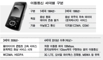 ¡á¡´¿ë¾î¡µ HSDPA = 3¼¼´ë ±â¼úÀÎ WCDMA(±¤´ë¿ª ÄÚµåºÐÇÒ ´ÙÁßÁ¢¼Ó) °¡¿îµ¥ Çϳª·Î 3.5¼¼´ë ÀÌÅë±â¼ú·Î ºÒ¸®±âµµ ÇÑ´Ù. 1.8Mbps¿¡¼­ 14.4Mbps °í¼ÓÀ¸·Î µ¥ÀÌÅÍ Àü¼ÛÀ» ÇÒ ¼ö ÀÖÀ¸¸ç ¿µ»óÅëÈ­µµ °¡´ÉÇÏ´Ù. WCDMA´Â À¯·´À» Áß½ÉÀ¸·Î »ó´ç¼ö ±¹°¡°¡ µµÀÔÇ߱⠶§¹®¿¡ ±¹Á¦·Î¹Ö¿¡ À¯¸®ÇÏ´Ù.