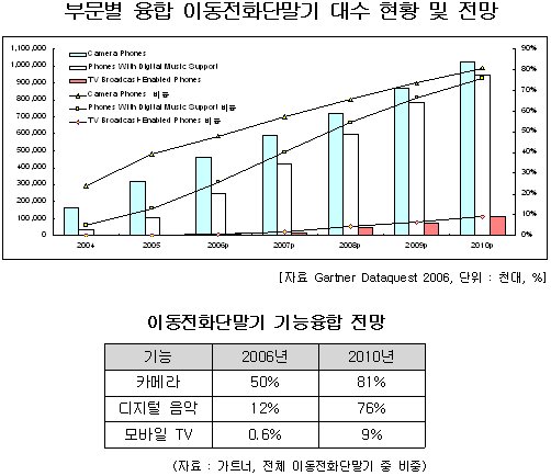 º¸°í¼­´Â ÈÞ´ëÆùÀÇ °æ¿ì ÃÖÃÊ Ä÷¯ LCD ä¿ë°ú ´õºÒ¾î Ä«¸Þ¶ó ±â´ÉÀÌ À¶Çյưí, ¹«¼± ÀÎÅͳÝÀÇ ¹ß´Þ°ú ´õºÒ¾î °ÔÀÓ±â´É ¹× MP3 ±â´ÉÀÌ À¶Çյǰí ÀÖÀ¸¸ç, ÃÖ±Ù ¸ð¹ÙÀÏ TVÀÇ µîÀåÀ¸·Î TV ±â´ÉÀÇ À¶ÇÕÀÌ Àü°³µÇ°í ÀÖ´Ù°í ¹àÇû´Ù.