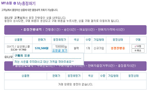 3. ÈïÁ¤°¡°Ý Á¦½Ã ÆäÀÌÁö¿¡¼ ÈïÁ¤Èñ¸Á°¡¿Í ÈïÁ¤¿äû±ÛÀ» ÀÔ·ÂÇÑ ÈÄ ÈïÁ¤°¡°Ý Á¦½Ã ¹öưÀ» Ŭ¸¯ÇÕ´Ï´Ù.