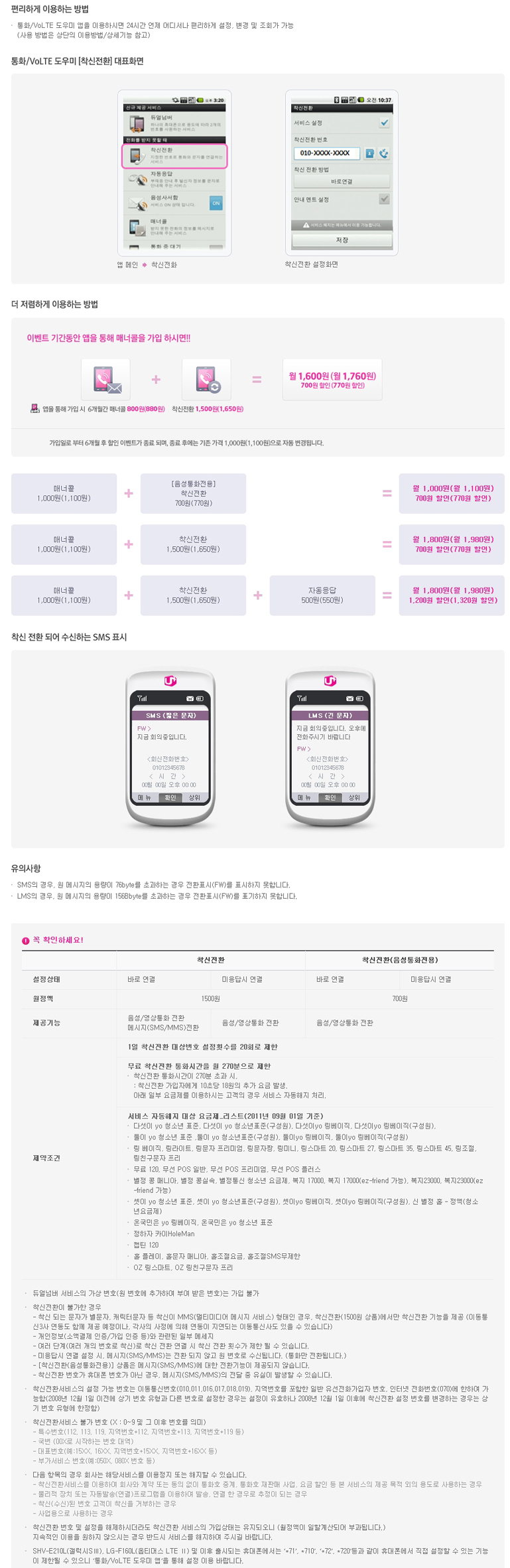 ¾Æ·¡ À̹ÌÁö¸¦ Ŭ¸¯ÇϽøé È®´ëÇØ¼ º¸½Ç¼ö ÀÖ½À´Ï´Ù. ¾Æ·¡ LGU+ ÁÖ¼Ò ÂüÁ¶Çϼŵµ µË´Ï´Ù.(http://www.uplus.co.kr/css/pord/cosv/cosv/RetrievePsMbSDmsgInfo.hpi?catgCd=50301&prodCdKey=C000000101)