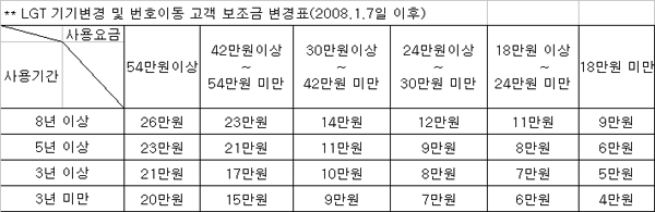 LGT ¾à°ü º¸Á¶±ÝÀÌ 2008³â 1¿ù 7ÀÏ ÀÌÈÄ ¾Æ·¡¿Í °°ÀÌ º¯°æµË´Ï´Ù.