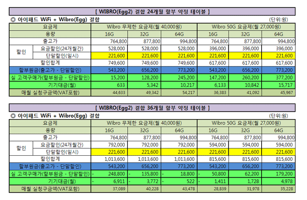 Á¦¸ñ ¡æ ¾ÆÀÌÆÐµåWiFi + Wibro(Egg) ¿ä±ÝÁ¦º° ÇҺΠ¾È³»ÀÔ´Ï´Ù